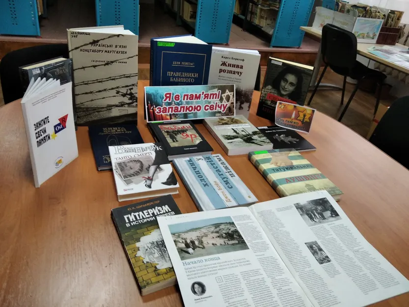 Для учнів 5-А класу Херсонської спеціалізованої школи І-ІІІ ступенів № 54 з поглибленим вивченням іспанської та інших іноземних мов,була організована тематична книжкова виставка приурочена до 27 січня – Міжнародний День пам’яті жертв голокосту.